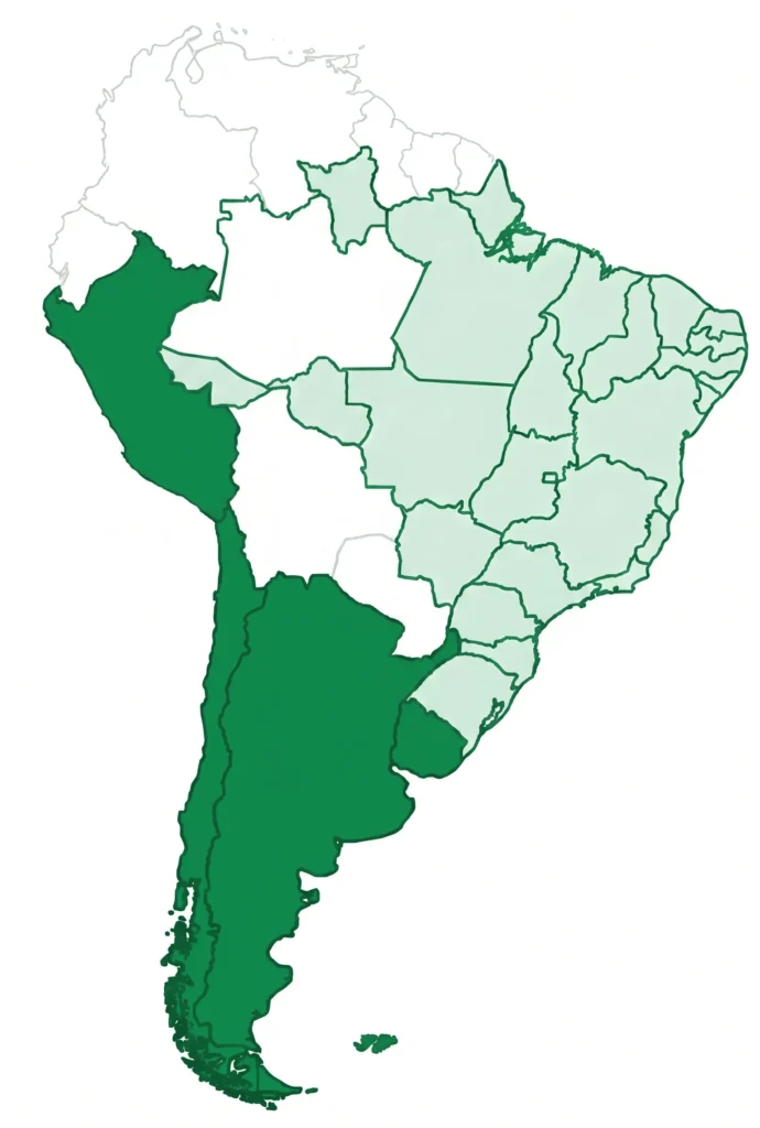 Conexão direta entre Brasil, Argentina, Chile, Uruguai e Peru.